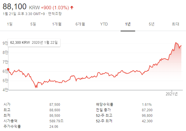 삼성전자는 현재 국내기업 시가총액 1위를 차지한 기업이기도 하고