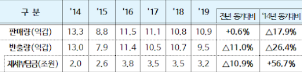 볼 수 있습니다. 하지만 담배의 판매량은 전혀 줄 기미가 보이지 않고 있습니다.