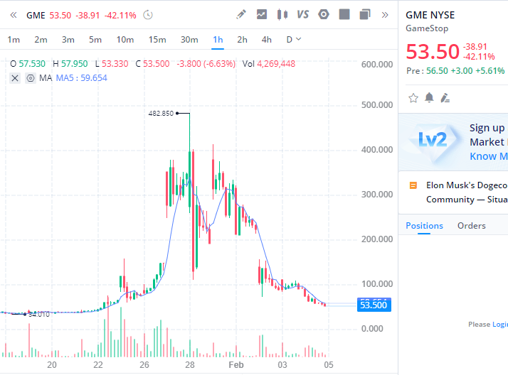 게임스탑의 주가는 점점 더 올랐습니다. 하지만 로빈후드 증권사는 매수 주문을 막아버리고