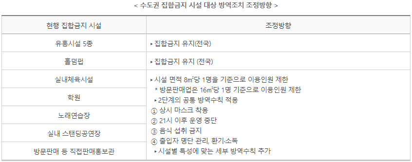 - 또한 거리두기 2단계 수칙인 21시 이후 운영중단, 음식 섭취 금지, 마스크 착용,