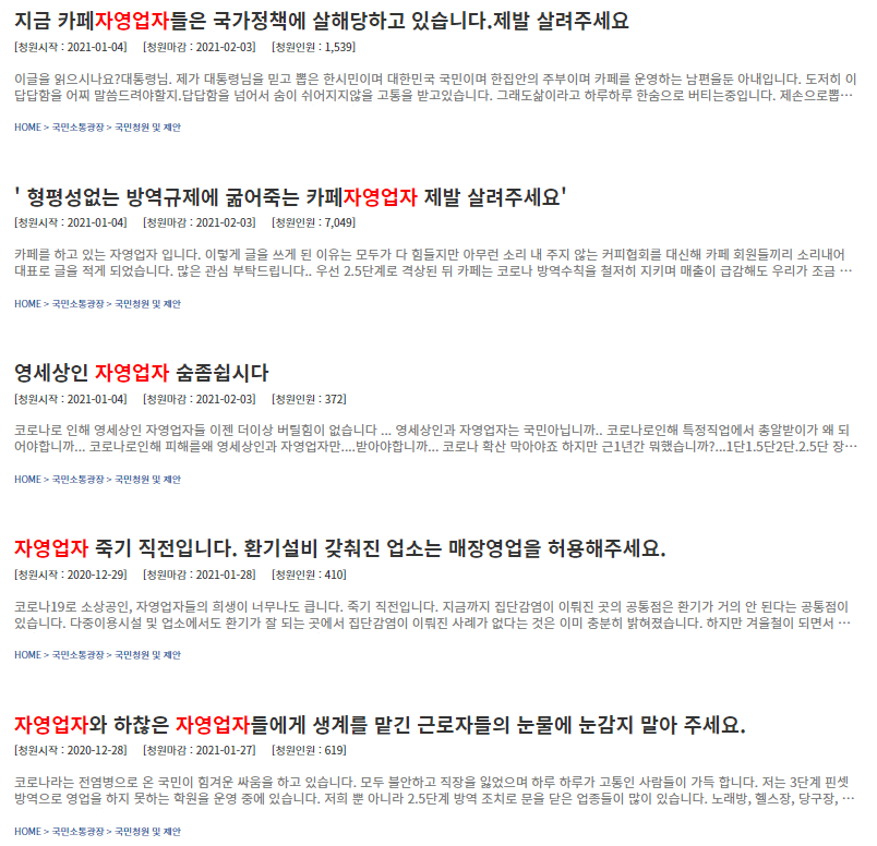 청와대 국민청원 글입니다. 이제 백신에 대한 기대감이 있다곤 하지만